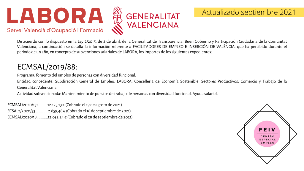 Actualización Septiembre 2021 – LABORA Servei Valencià d’Ocupació i Formació Publicado el octubre 4, 2021octubre 4, 2021 por FEIV- Centro Especial de Empleo Comparte esto: Compartir en X (Se abre en una ventana nueva) X Compartir en Facebook (Se abre en una ventana nueva) Facebook Me gusta Cargando... Related