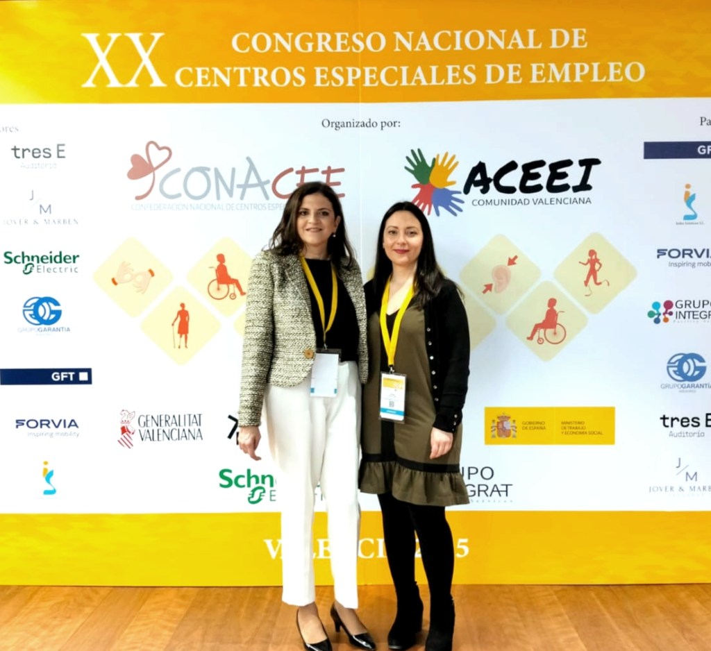El XX Congreso Nacional de Centros Especiales de Empleo se ha celebrado los días 20 y 21 de febrero en la ciudad de València. En él se han abordado los retos de la inclusión laboral en un evento clave para debatir sobre la integración socio-laboral de las personas con discapacidad, organizado por CONACEE – CONFEDERACION NACIONAL DE CENTROS ESPECIALES DE EMPLEO y ACEEI (Asociación de Centros Especiales de Empleo para la Integración). Allí han estado Vanessa Alarcón y Tania Hernández, Responsables de RRHH y Unidad de Apoyo del CEE FEIV, junto a personas expertas, autoridades y otros profesionales del sector que han asistido para analizar los desafíos y oportunidades en el ámbito del empleo protegido.